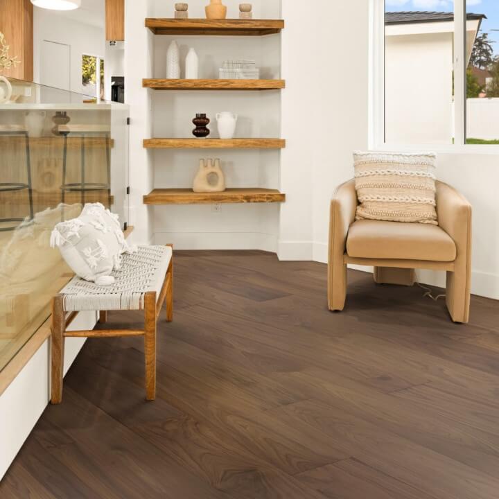 American Black Walnut{ "items": [ { "src": "images/large/american-black-walnut-zoomout.jpg", "width": 1080, "height": 1080 }, { "src": "images/large/american-black-walnut-straight.jpg", "width": 1080, "height": 1080 }, { "src": "images/large/american-black-walnut-angled.jpg", "width": 1080, "height": 1080 }, { "src": "images/large/american-black-walnut-surface.jpg", "width": 1080, "height": 1080 }, { "src": "images/large/american-black-walnut-lifestyle.jpg", "width": 1080, "height": 1080 }, ], "caption": "7-1/2\" LUXURY WIDTH × 5/8\"(4MM WEAR LAYER) × 6-1/3ft RANDOM LENGTH. 23.31 SQ. FT/CARTON. UV CURED URETHANE FINISH. COLOR TREATMENT: STAINED. SPECIES: American Black Walnut. GRADE: PREMIUM (MINIMAL KNOTS AND SAP)." }7½” luxury width