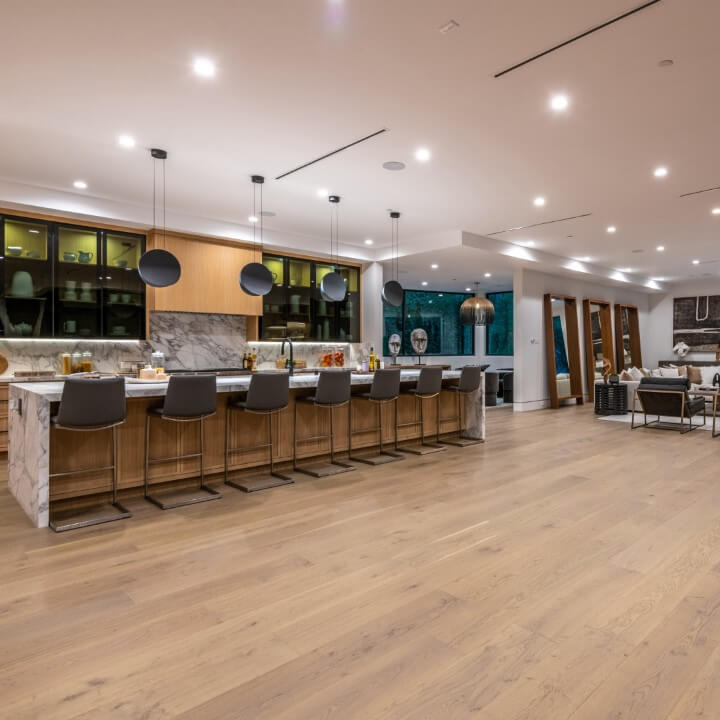 Venice Bay{ "items": [ { "src": "images/large/venice-bay-zoomout.jpg", "width": 1080, "height": 1080 }, { "src": "images/large/venice-bay-straight.jpg", "width": 1080, "height": 1080 }, { "src": "images/large/venice-bay-angled.jpg", "width": 1080, "height": 1080 }, { "src": "images/large/venice-bay-surface.jpg", "width": 1080, "height": 1080 }, ], "caption": "9-1/2\" LUXURY WIDTH × 5/8\"(4MM WEAR LAYER) × 7-1/3ft RANDOM LENGTH. 28.42 SQ. FT/CARTON. UV CURED URETHANE FINISH. COLOR TREATMENT: STAINED. SPECIES: EUROPEAN OAK. GRADE: PREMIUM (MINIMAL KNOTS AND SAP)." }9½” luxury width
